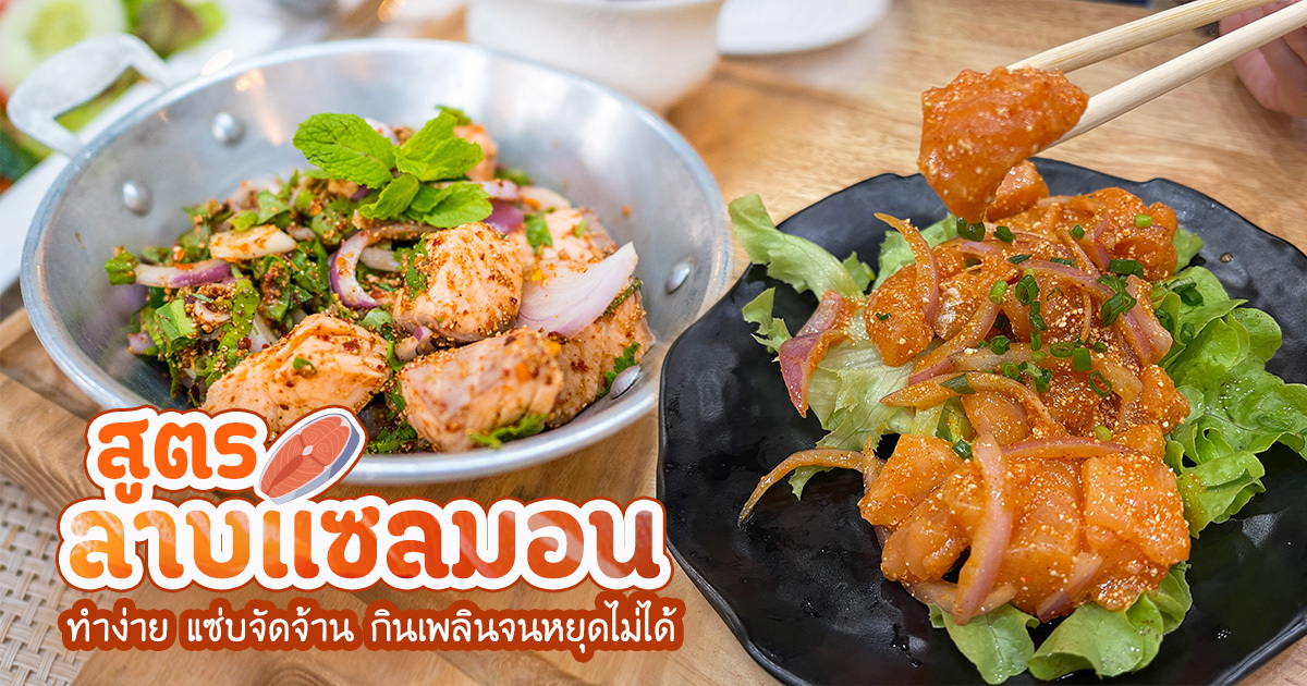 ใส่แซลมอนหั่นเต๋าลงไป คลุกเครื่องต่าง ๆ ให้เข้ากับเนื้อปลาอย่างเบามือเพื่อไม่ให้เนื้อปลาเละ