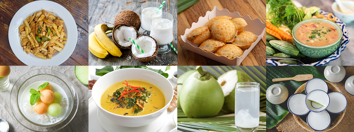 จะเห็นได้ว่า มะพร้าว นั้นเป็นวัตถุดิบที่อเนกประสงค์สุด ๆ ทั้งกะทิที่ใส่ในแกงและของหวาน เนื้อมะพร้าวที่ทำได้ทั้งยำและวุ้น ไปจนถึงน้ำมะพร้าวที่ดื่มเปล่าหรือผสมเครื่องดื่มอื่น ๆ ได้อีกเพียบ ทั้ง 40 เมนูที่เรารวมมาให้นี้ครอบคลุมทุกโอกาสจริง ๆ ทั้งมื้อหลัก ของหวานหลังอาหาร ไปจนถึงเครื่องดื่มแก้ร้อน ลองเลือกทำตามใจชอบดูนะ แล้วจะพบว่าทำอาหารจากมะพร้าวนั้นไม่ยากอย่างที่คิด และอร่อยกว่าที่คาดไว้มากด้วย