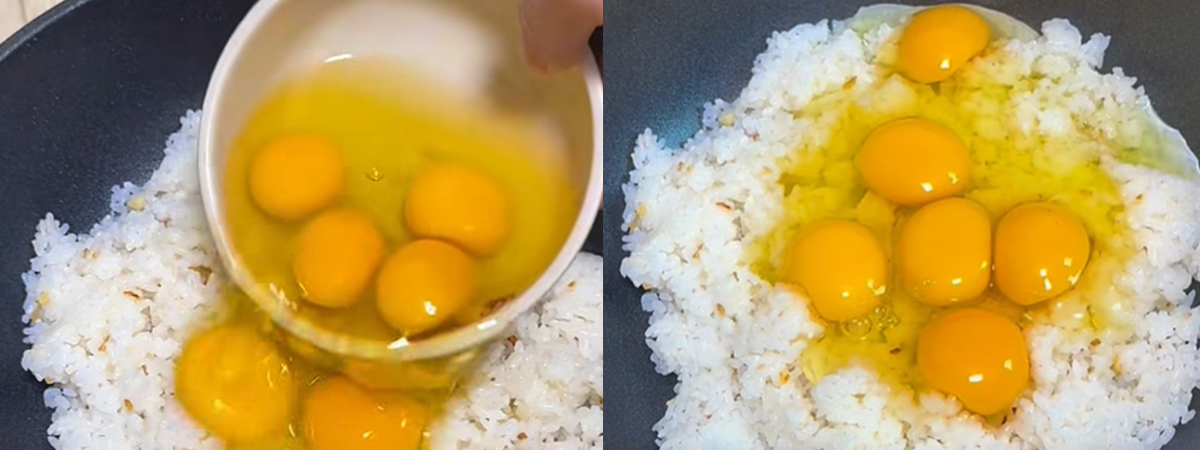 เฟซบุ๊ก กับข้าวหลังครัว ได้เผยภาพการทำข้าวผัดด้วยสูตรใหม่ ไม่ว่าจะอยู่ที่ไหน ก็สามารถทำกินได้แบบง่าย ๆ วัตถุดิบไม่มีอะไรมาก เพียงแค่เตรียมข้าวกับไข่ 2 อย่างนี้เท่านั้น ผัดและคลุกให้เข้ากัน เพียงเท่านี้ก็ได้ข้าวผัดแล้ว แถมยังอุดมไปด้วยโปรตีนจากไข่แบบเน้น ๆ